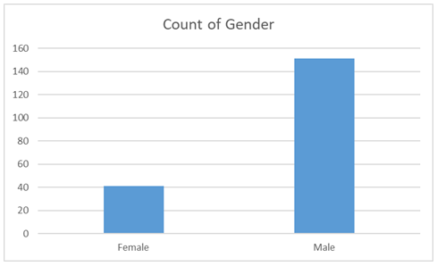 At Eenovators Limited in a recent request for applications for an energy engineering intern with Electrical, Mechanical, Chemical and Process or Instrumentation and Control Engineering background, further showed these disparities. In close to 200 applications received, less that 40 of the applicants were female and majority were male as shown in the graph below: