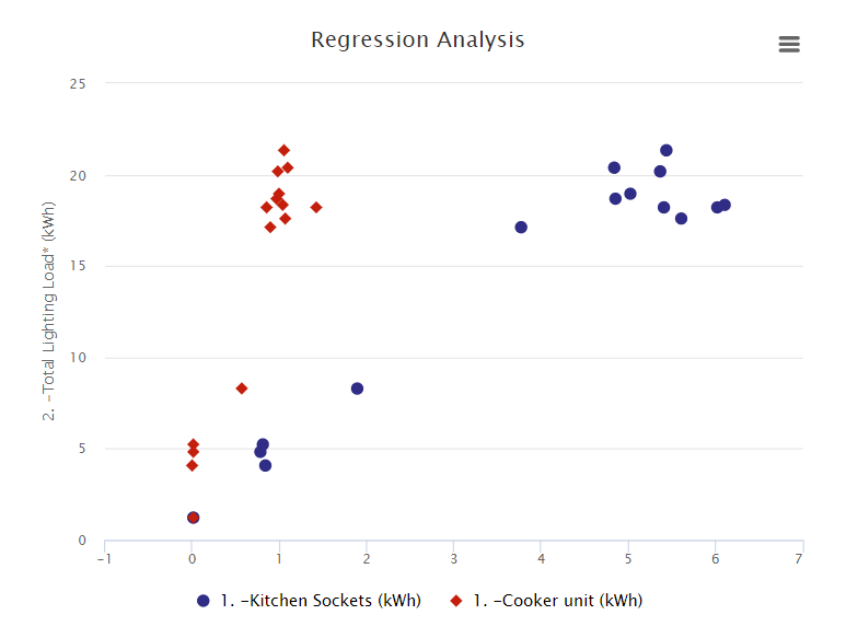 However, the staff could did not collect occupancy data previously. However, the team noted that higher occupancy would always mean increased energy consumption within the kitchen section whose data was being collected by the energy management platform. Tests on this sections viability involved multiple linear correlation between total lighting load and kitchen loads which included kitchen sockets and the cooker with January 2021 as a sample range.